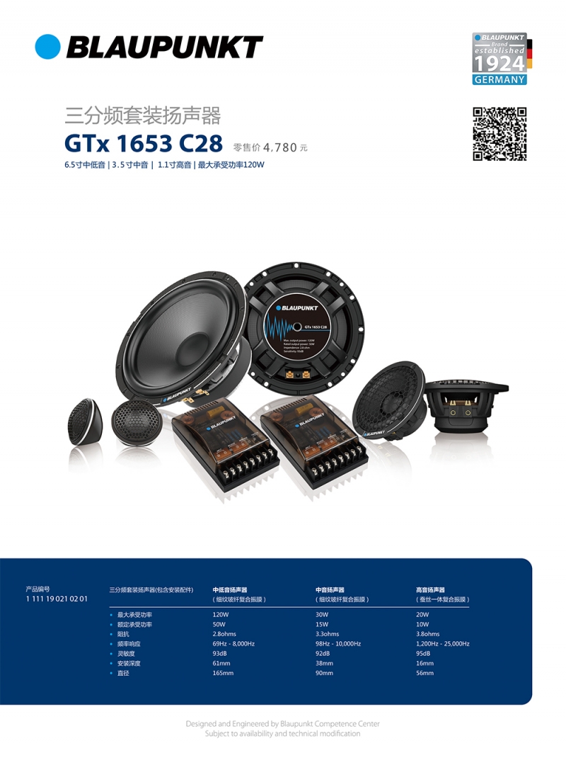 德國藍寶高品質(zhì)三分頻套裝 GTx 1653 C28 整套三分頻,超高性?xún)r(jià)比,中低音和中音采用的都是細紋玻纖復合振膜,高音采用蠶絲一體復合振膜,音色清晰穩定人聲飽滿(mǎn)豐富;盆架為高級鋁合金鑄造, 具備更強的抗扭曲能力, 能長(cháng)時(shí)間工作;內部高級磁鋼反應快,磁性強,能讓發(fā)音更加干凈有力。人聲還原真實(shí),聲場(chǎng)立體豐富,整體層次感以及人聲的細膩度都表現得淋漓盡致!
